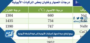 يرجع ارتفاع درجة انصهار المركبات الأيونية إلى قوة الرابطة الأيونية.