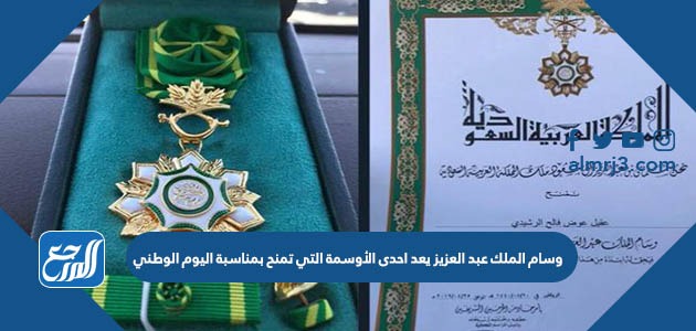 وسام الملك عبد العزيز يعد احدى الأوسمة التي تمنح بمناسبة اليوم الوطني، إنّ اليوم الوطني هو واحدًا من أكثر المناسبات أهمية في المملكة العربية السعودية حيث يُعد اليوم الذي استطاع فيه الملك عبد العزيز آل سعود من توحيد صفوف الدولة السعودية وضم مملكة نجد ومملكة الحجاز وملحقاتها وذلك لتكون مملكة واحدة بدلًا من التفرق، لذا تقوم السلطات السعودية بالاحتفال بهذا اليوم بشكل سنوي حيث يوافق يوم 23 من شهر سبتمبر من كل عام، ومن خلال موقع المرجع سنتعرّف على الإجابة الصحيحة للسؤال المطروح كما سنتناول مجموعة من أهم المعلومات حول وسام الملك عبد العزيز آل سعود.