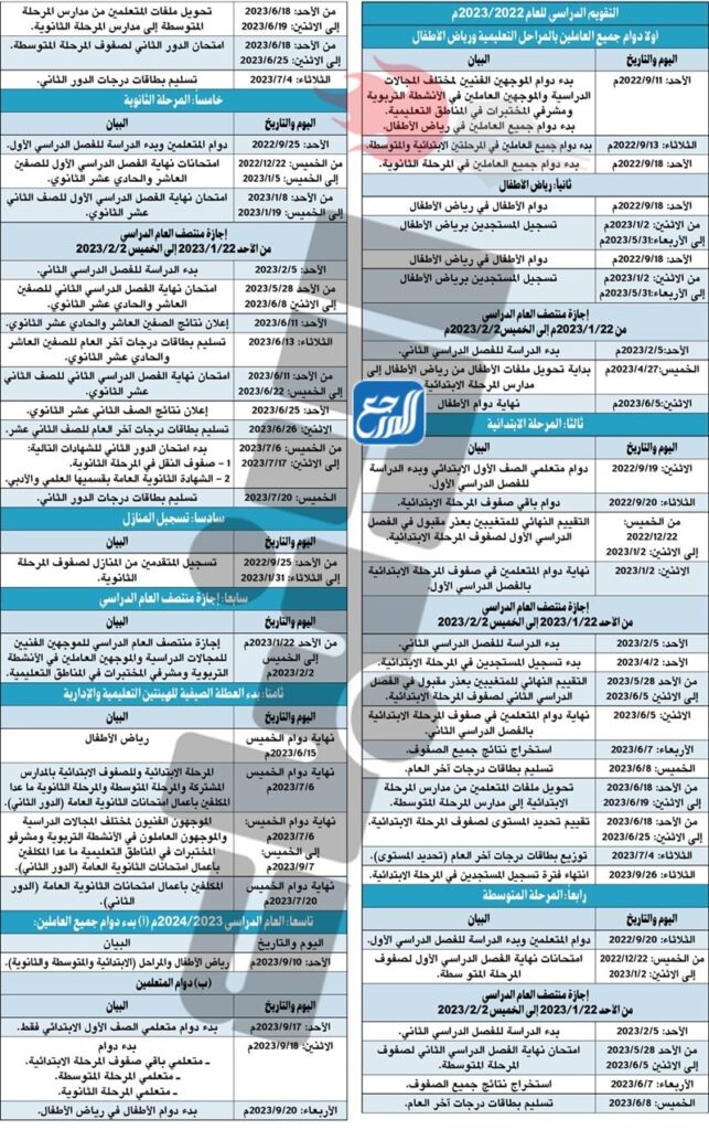 التقويم الدراسي الكويتي عام 2022 / 2023