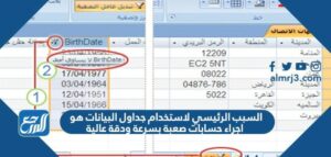 ذكرنا سابقًا أنّ جدول البيانات هو عبارة عن صفوفٍ وأعمدة منظّمة لتسهيل عملية تنظيم البيانات والتعديل عليها بالإضافة إلى استرجاعها عند الحاجة، بسرعةٍ ودقةٍ عاليةٍ، وبذلك تكون العبارة السَبب الرّئيسي لاستخدامِ جداول البياناتِ هو إجراء حسابات صعبة بسرعةٍ ودقةٍ عالية: