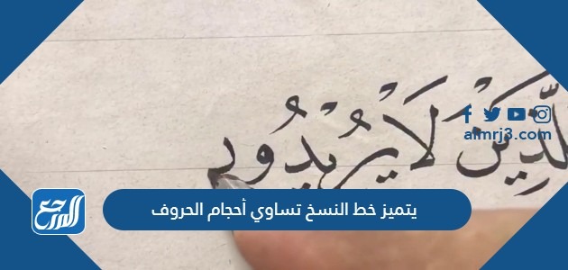 يتميز خط النسخ تساوي أحجام الحروف، تتعدد أنواع الخطوط التي يتم كتابة حروف اللُغة العربية بها، ولكل نوع من الخطوط العربية سمات وخصائص مُعيّنة، كما أن حروف اللغة العربية تنقسم إلى قسمين منها ما يُكتب على السطر ومنها ما ينزل عن السطر، ومن خلال موقع المرجع سيتم التعريف بالخط العربي وأنواع الخطوط العربية والأساليب المستخدمة عند الكتابة بالخطوط العربية، كذلك خصائص الخط العربي، ومن ضمنها خط النسخ الذي يتمحور سؤالنا في هذا المقال عنه.