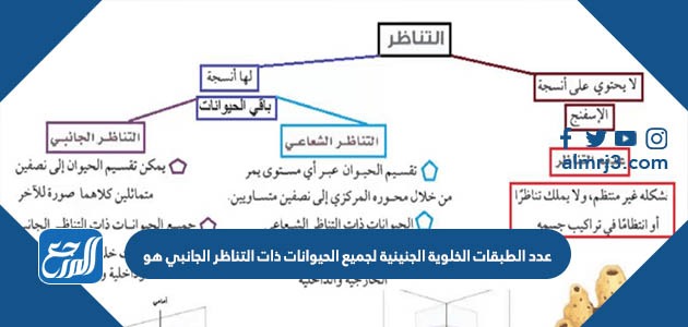 عدد الطبقات الخلوية الجنينية لجميع الحيوانات ذات التناظر الجانبي هو