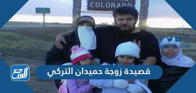قصيدة زوجة حميدان التركي هو ما سيتمّ عرضه في هذا المقال، فلقد انتشرت قصة حميدان التركي سعوديّ الأصل كثيراً في الوطن العربيّ، وذلك بعد اعتقاله وزوجته وسجنهما في الولايات المتّحدة الأمريكيّة، وتحديداً في ولاية كولورادو، ثم انتشرت قصيدة كانت قد كتبتها زوجة حميدان التّركي، لتناشد بها العالم بعد وصول عائلتهما لحالةٍ بائسةٍ جدّاً إثر اعتقالهما، ويهتمّ موقع المرجع بتسليط الضّوء على أبيات هذه القصيدة كاملةً، وتعريفنا بزوجة حميدان التركي وقصّة اعتقالهما.