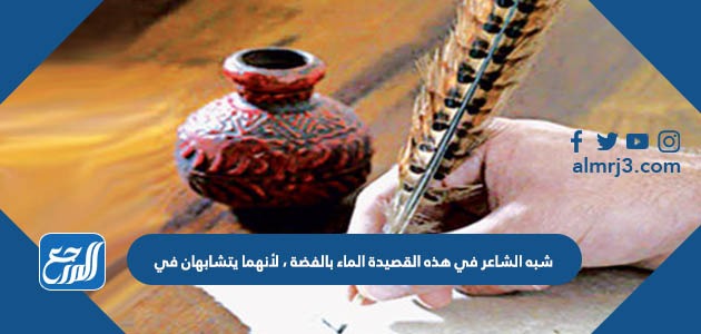 شبه الشاعر في هذه القصيدة الماء بالفضة ، لأنهما يتشابهان في خواص تجمعهما، وسنوضح تلك الخواص في هذا الموضوع لمعرفة المعنى المقصود بدقة وأيضًا للتعرف على أحد تجلي مظاهر جمال اللغة العربية وفنونها والاستفادة من مواطن الجمال بها في عمليات التعليم في المراحل الدراسية المختلفة، ويقدم موقع المرجع من خلال هذا المقال تعريفًا لوجه الشبه الذي قصده الشاعر في تلك القصيدة مع التعرف على جمال ذلك التشبيه البلاغي.