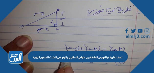 تصف نظرية فيثاغورس العلاقة بين طولي الساقين والوتر في المثلث المنفرج الزاوية