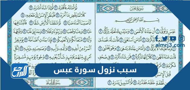 ما هو سبب نزول سورة عبس السورة الثالثة في الجزء الثلاثين من القرآن الكريم، التي تقع من ضمن سور المفصّل الذي قد فضّل الله -سبحانه وتعالى- به القرآن الكريم على سائر الكتب السماوية السابقة، وهو تفضيل للنبي محمد -صلى الله عليه وسلم- على باقي الأنبياء الذين أنزل عليهم كتب سماوية، وفي هذا المقال يتوقف موقع المرجع مع بيان سبب نزول هذه السورة، إضافة للوقوف على بعض الموضوعات المتعلقة بسورة عبس.