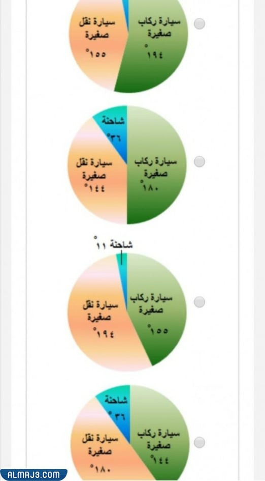 التمثيل بالقطاعات الدائرية للبيانات في الجدول أدناه هو