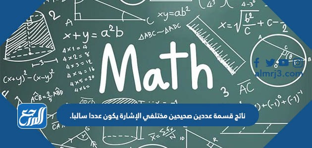 ناتج قسمة عددين صحيحين مختلفي الإشارة يكون عددا سالبا.، تَعتمد الرياضيات بشكل رئيسي على الأعداد، سواءً كانت أعدادًا صحيحة أو نسبية أو الكَسرية كما أن الأعداد الصحيحة تَنقسم إلى أعداد مُوجبة وأعداد سالبة، ويتم إدخال هذه الأرقام في مُعادلات عَديدة لأسباب مُختلفة لاسيما، وأنّ الرياضيات باتت مُتداخلة مَع الحياة اليومية للبشر، ولا يُمكن تجاهلها أو الاستغناء عَنها وفي موقع المرجع سوف نَتعرف معًا على الأعداد الصّحيحة، وعَلى صحّة كَون الناتج عدد سّلبي في حَال قسمة اثنين مِن الأعداد الصحيحة المختلفة في الإشارة.