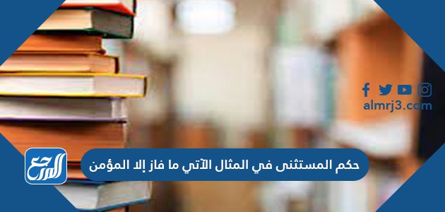 حكم المستثنى في المثال الآتي ما فاز إلا المؤمن وما هي أركان أسلوب الاستثناء، الذي يعتبر من أهم أساليب التعبير في نحو اللغة العربية أكبر لغات العالم وأكثرها دقة، وقد تنوعت الأساليب التي تستخدم لوصف حالات الفعل في الكلام أو الفاعل فمنها أسلوب التعجب، أسلوب الاستفهام، أسلوب النفي والنهي، حيث إنً أسلوب الاستثناء محط اهتمام منهاج اللغة العربية في المملكة العربية السعودية لدراسة أركانه وأهم أنواع الاستثناء وفي موقع المرجع سنسلط الضوء على إعراب المستثنى في ما فاز إلا المؤمن وشرح أنواع الاستثناء في قواعد اللغة، بالإضافة إلى تعريف ما هو أسلوب الاستثناء.
