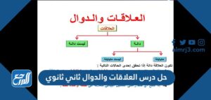 إيجاد حل درس العلاقات والدوال 2 ث للفصل الدراسي الأول يتطلب توفير متخصصين في علم الرياضيات من المعلين لسهولة توصيل خطوات حلها ويكون الطلبة من المرحلة الثاني ثانوي متمكنين في مبادئ الرياضيات دون صعوبة لإكمال باقي الدروس الحسابية صفحة 18، يُجمع الطلاب في مدارس السعودية على صعوبة مادة الرياضيات خاصة درس الدالة في الثانوي لذلك يتطلب توفير حل لزيادة المعرفة، ويمكنكم مشاهدة الفيديو التالي لحل درس العلاقاتّ والدوال: