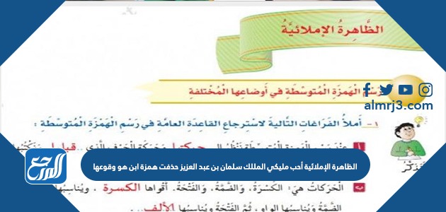 الظاهرة الإملائية أحب مليكي المللك سلمان بن عبد العزيز حذفت همزة ابن هو وقوعها