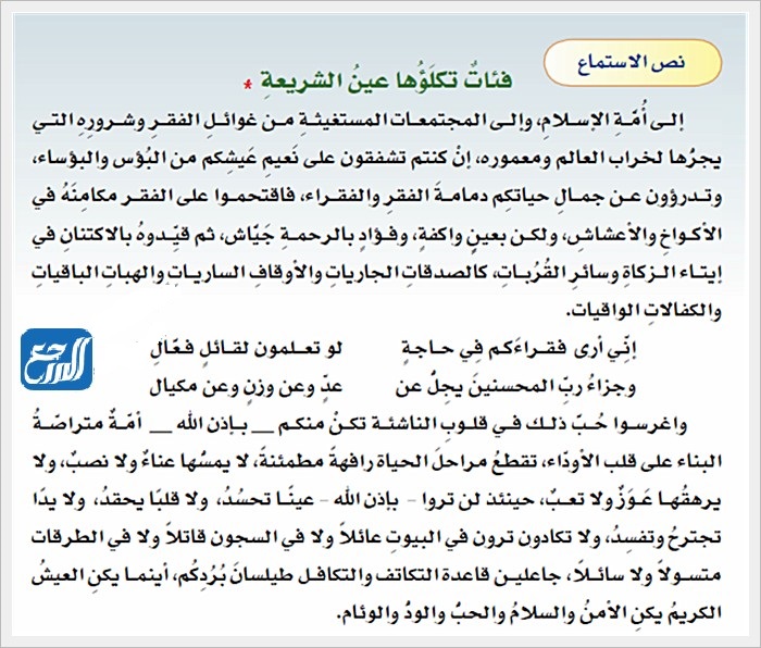 نص الاستماع فئات تكلؤها عين الشريعة