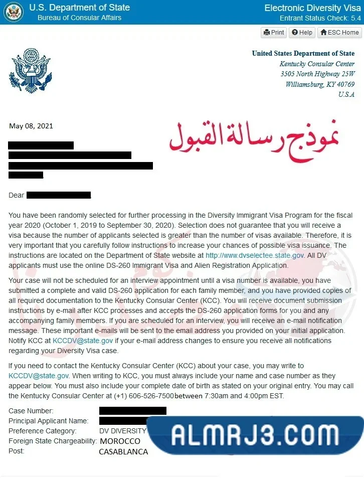 نص رسالة القبول في اللوتري الامريكي، يرغب الكثير من الأفراد في معرفة النص الخاص برسالة القبول في القرعة العشوائية الخاصة بالولايات المتحدة الأمريكية، التي على أثرها يتم اختيار عدد من الأسماء للدخول إلى الولايات المتحدة الأمريكية بشكل قانوني، لذلك من خلال موقع المرجع سوف نتناول الحديث عن طريقة معرفة نتائج قرعة امريكا DV-Lottery 2023، وسنرفق نموذج رسالة القبول في اللوتري الأمريكي.