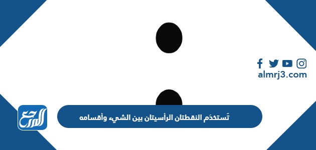 تُستخدَم النقطتان الرأسيتان بين الشيء وأقسامه، حيث يتّم استخدام علامات الترقيم عند الكتابة في اللغة العربية بهدف تقسيم الجمل وتوضيح معانيها وتسهيل قراءتها، ويساعدنا موقع المرجع ضمن المقال التالي على فهم ما هي علامات الترقيم وعلى ماذا تدّلُ وكيفية استخدام كل منها، وبالتحديد لماذا تستخدم النقطتان الرأسيتان بين الجمل في اللغة العربية.
