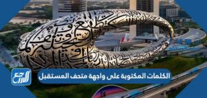 الكلمات المكتوبة على واجهة متحف المستقبل