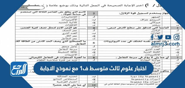 تسهيلًا على طلاب وطالبات الصف الثالث المتوسط، وفرنا نموذج اختبار لمادة العلوم، مُرفق بنموذج الإجابة الخاص به، ويمكن الحصول على النموذج من خلال تحميل الرابط التالي مباشرة بصيغة word “من هنا“.