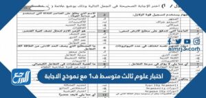 اختبار علوم ثالث متوسط ف1 مع نموذج الاجابة