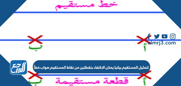 لتمثيل المستقيم بيانيا يمكن الاكتفاء بنقطتين من نقاط المستقيم صواب خطأ، إنّ علم الرياضيّات من العلوم الجامعة التي تشمل أفرع كثيرة، يتم تطبيقها على العمليات الحسابيّة وعلوم الإحصاء، الاحتمالات، علم الجبر وعلوم الهندسة وغيرها، فبدونها لما كان هناك تواجد للعلوم الأخرى المعروفة كالفيزياء والكيمياء، حيث ضمّت الرياضيّات تمثيلات بيانيّة بدأت بالمستقيم والذي يتمثل من خلال عدة نقاط، وعليه نشأت بيانات أكثر تعقيدًا، لذا ومن خلال مقالنا اليوم عبر موقع المرجع سيتم الإجابة عن السؤال المطروح ونوضح تعريف المستقيم.