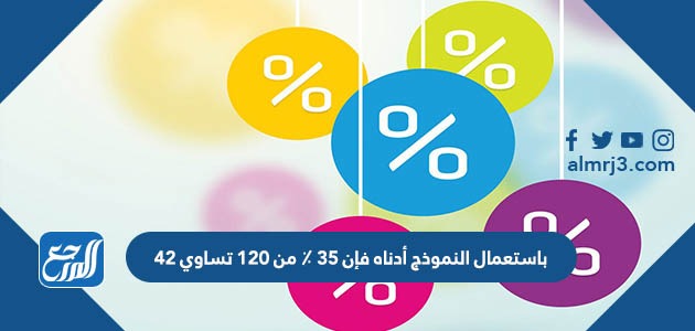 باستعمال النموذج أدناه فإن 35 ٪ من 120 تساوي 42، فعلم الرياضيات من أوسع العلوم التطبيقية التي عرفها الإنسان، والذي يدخل في كافة مجالات العلوم التطبيقية الأخرى من حيث ما يقدمه من نظريات وقوانين تفسير الأمور المجردة والمحسوبة ذهنياً في عقل الإنسان، وقانون النسبة المئوية وحسابها هو من أهم القوانين التي يقدمها لنا هذا العلم، وفي مقالنا اليوم عبر موقع المرجع سوف نتعرف على النسبة المئوية وكيفية حسابها.