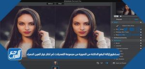 نستطيع إزالة البقع الداكنة من الصورة من مجموعة التعديلات ثم اختار خيار العين الحمراء