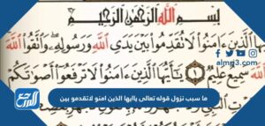 ما سبب نزول قوله تعالى ياايها الذين امنو لاتقدمو بين من فوائد معرفة أسباب النزول: معرفة الحكمة التي أرادها الله تعالى من التشريع، وتحقيق الفهم الصحيح لكلام الله عز وجل، لذلك يهتم موقع المرجع في الحديث عن ما سبب نزول قوله تعالى ياايها الذين امنو لاتقدمو بين، وعن تفسير قوله تعالى ياايها الذين امنو لاتقدمو بين، وعن سبب نزول الآية 5 من سورة الحجرات، وعن سورة الحجرات، ومضامينها.
