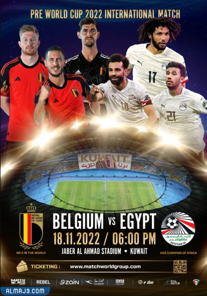 لقد أعلن الاتحاد المصري لكرة القدم عبر الموقع الرسمي الخاص به عن انطلاق مبارة ودية بين المنتخب المصري والمنتخب البلجيكي، وذلك قبل انطلاق بطولة كأس العالم فيفا 2022 ميلاديًا، كما أُعلن عن موعد المباراة، والتي ستقام اليوم الجمعة الموافق للثامن عشر من شهر نوفمبر / تشرين الثاني، ويمكن معرفة وقت بدأ المبارة من خلال النقاط التالية:[1]