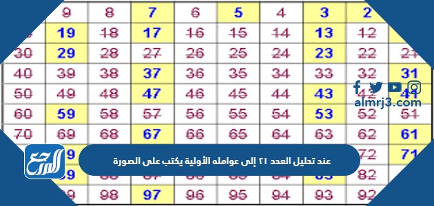 عند تحليل العدد ٢١ إلى عوامله الأولية يكتب على الصورة