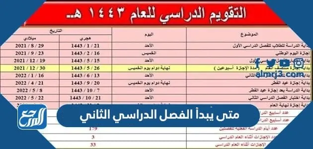 يتساءل طلّاب متى يبدأ الفصل الدراسي الثاني 2025 وهو أحد الأسئلة التي تمّ طرحها عبر مواقع ومنصّات التّواصل بالتّزامن مع قرب انتهاء الفصل الدراسي الأوّل من العام 1446 هــ، حيث يُعتبر العام الدراسي الحالي هو أوّل الأعوام التي تمّ عبرها اعتماد جملة التَّحديثات الأخيرة، التي شملت على إضافة تعديلات وإجازات وعطل وفصول دراسيّة، ما استدعى الطّلاب للسؤال عن موعد بداية الفصل الدراسي الثاني، وعبر مَوقع المَرجع يُسعدنا أن نقوم على طرح تقويم العام الدراسي 2025 الذي يشمل على توقيت بداية دوام الفصل الدراسي الثاني للعام 1446 هــ.