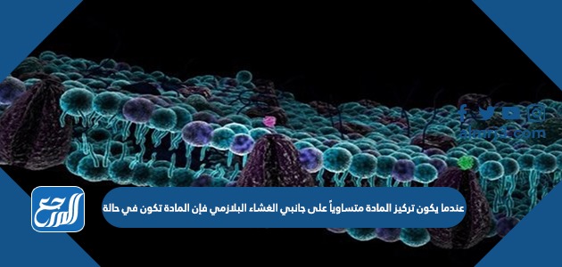 عندما يكون تركيز المادة متساوياً على جانبي الغشاء البلازمي فإن المادة تكون في حالة