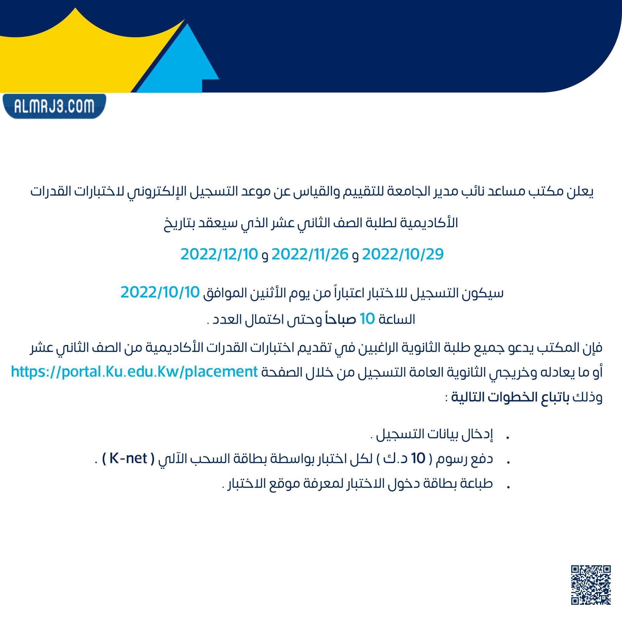 - ku.edu.kw , نظام التسجيل الإلكتروني لاختبارات القدرات الأكاديمية , 11/10/2022