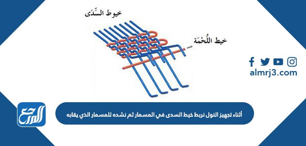 عند تجهيز النول التقليدي للبدء بحياكة الخيوط ونسجها، يتم ربط خيوط السدى وشدها عن طريق المسامير التي تقابل بعضها البعض، بعد ذلك تمرير خيوط اللحمة من بين خيوط السدى وتشبيكها ببعضها البعض، من هذا نستنتج أن الجواب الصحيح لهذا السؤال هو: