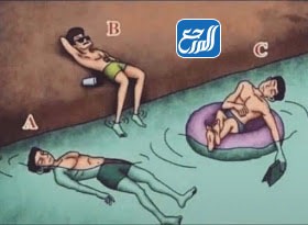 الشخص (C): ليس الميت، فعلى الرغم من أن الكثير من الناس اعتقدوا أنه الميت لأن الكتاب أو اللابتوب الذي يمسكه في الماء والرجل العاقل لا يفعل ذلك، إلا أن هذا التحليل غير كاف؛ لأن من المعروف أن الرجل الميت يفقد القدرة على الإمساك بأي شيء فكيف هو يفعل!