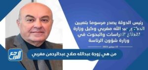 من هي زوجة عبدالله صلاح عبدالرحمن مغربي فقد نشط رواد مواقع التواصل الاجتماعي، خلال الساعات القليلة الماضية في جمع المعلومات الشخصية عن السيد عبدالله صلاح عبدالرحمن مغربي، على خلفية تعيينه في منصبه الجديد، وبناءً على ذلك سيقدم لكم موقع المرجع، فرصة التعرف على من هي زوجة عبدالله صلاح عبدالرحمن مغربي وما هو منصبه الجديد، من خلال تزويديكم بالبيانات الشخصية المُتاحة عنه وعن عائلته.