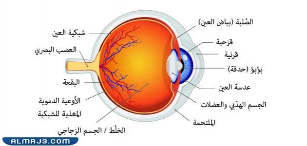 تم بشرح تركيب العين للتعرف على كل جزء في العين ووظيفته، حيث أطلق على كل جزء في العين مسمّى مختلف عن الآخر للتمكن عن فهم وظيفة ودور كل منها، وهذه الأجزاء هي: