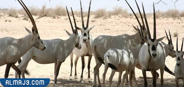 - المها العربي: يعتبرُ حيوان المها العربي أحدُ أنواع الظباء التي تعيشُ في بيئة صحراويّة صعبّة، ويتميّزُ بمظهره الأبيضَ الساطع، والحوافرِ العريضّة، والقرون الطويّلة والمحنيّة قليلاً، وهوَ رمزُ الجمالَ، ولحيوانِ المها قدرةٌ هائلة على التكيّف مع الظروفِ المُحيطّة.