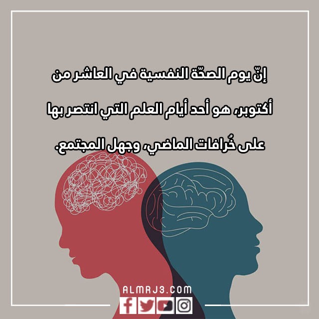 أجمل صور وعبارات اليوم العالمي للصحه النفسية 10 أكتوبر وأجمل الكلمات التي تُقال في تلك المناسبة المميّزة التي يجري تبنيّها بعدد واسع من العبارات والكلمات الأنيقة، لما لها من دور بارز في تأمين السّلامة العامة للإنسان، فالصحة النفسيّة هي الأساس في سلامة وصحّة بقيّة أجزاء وحياة الإنسان، وعبر موقع المرجع يُمكن لزوّارنا أن يتعرّفوا على متى يصادف يوم الصحة النفسية العالمي، وعلى باقة من أجمل عبارات عن الصحة النفسية لعام .