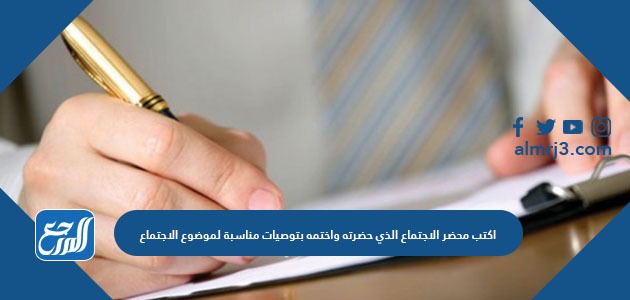 اكتب محضر الاجتماع الذي حضرته واختمه بتوصيات مناسبة لموضوع الاجتماع طلب في منهاج اللغة العربية في الصف الثالث الثانوي في كثير من المناهج التربوية في الوطن العربي، حيث يُعدُّ هذا النوع من الأسئلة والطلبات ضروريًا لتعليم الطلاب كيفية الانخراط في سوق العمل وتعلم المهارات الأساسية التي تتطلبها أيَّةُ وظيفة في العمل، وحضور الاجتماعات الخاصة بالأعمال والخلاص منها بما هو مفيد من المهارات المهمة للجميع، وفي هذا المقال سوف يعرض موقع المرجع تعريف محضر الاجتماع ثمَّ سيمرُّ على اكتُب مَحضر الاجْتماع الذي حضرته واختمْه بتوصِيات مناسِبة لموضوْع الاجْتماع.
