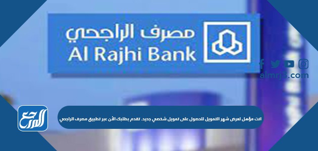 انت مؤهل لعرض شهر التمويل للحصول على تمويل شخصي جديد. تقدم بطلبك الأن عبر تطبيق مصرف الراجحي؛ رسالة تأتي لعملاء بنك الراجحي للتقديم في العروض التي يقدمها البنك، حيث يقدم كل حين وآخر العروض التمويلية الشخصية بأقل نسب للفائدة، ومن خلال موقع المرجع سنعرض لكم عروض بنك الراجحي، وكيفية التقديم على التمويل الشخصي إلكترونيًا، وكافة المعلومات المهمة المتعلقة بهذا الشأن.